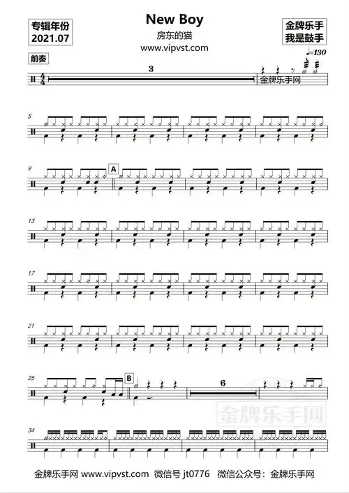 房东的猫 - new boy 鼓谱 (动态) 15元