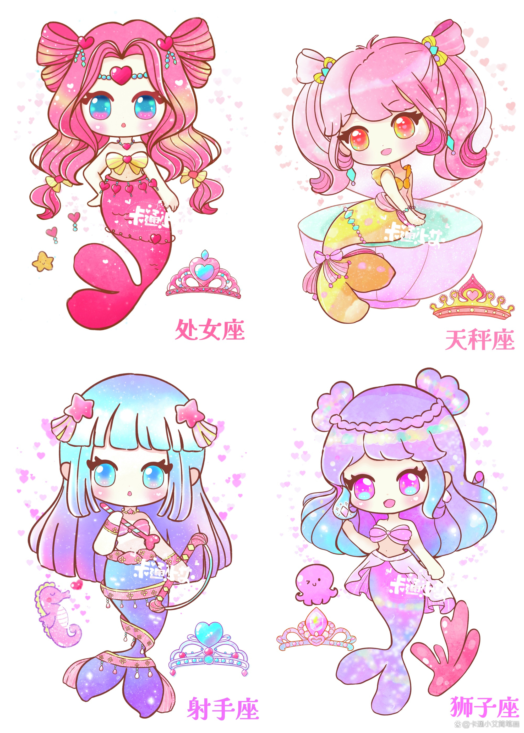 简笔画星座美人鱼小公主 手绘星座美人鱼公主教程来啦!