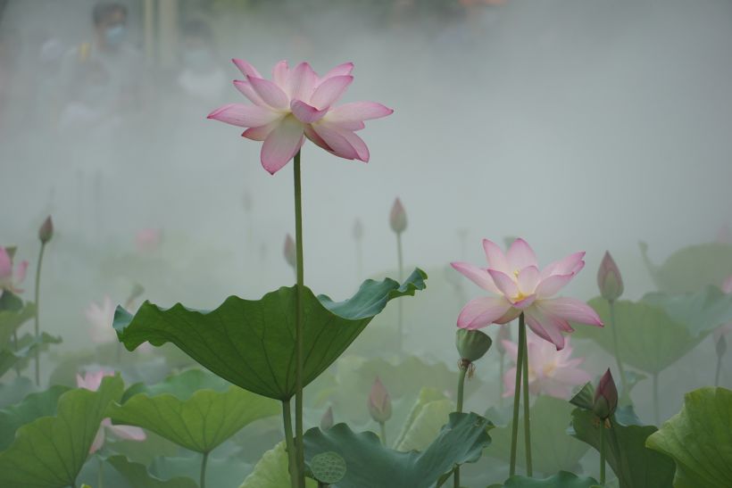 增加了人工烟雾,荷花岛倾刻变成了人间仙境,吸引了不少人来观赏荷花