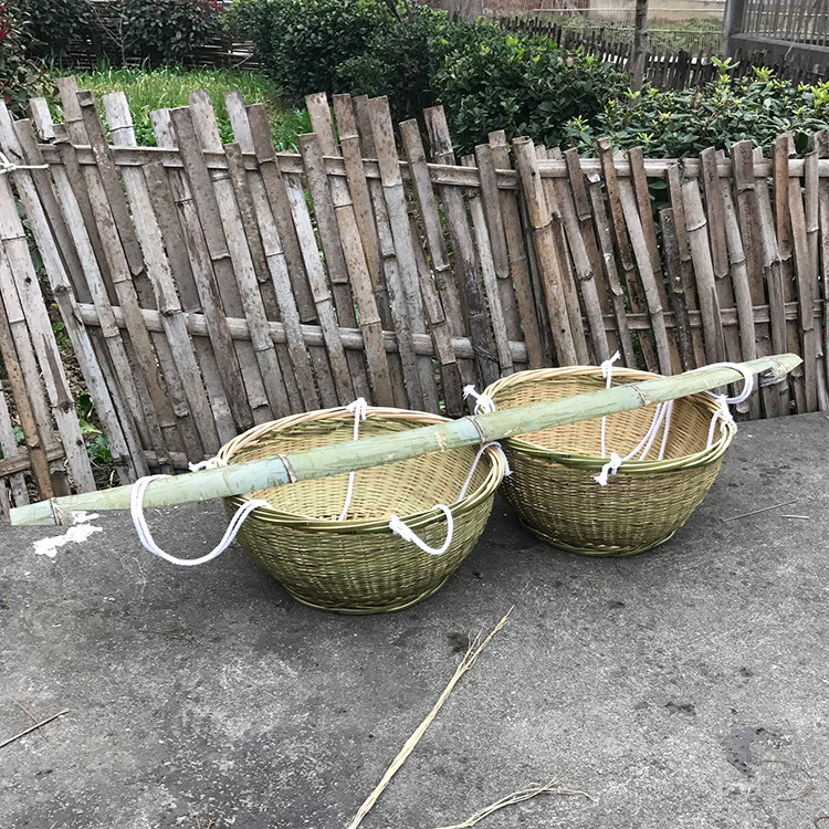 箩筐挑担担子结婚过礼竹编制品圆形扁担编织竹编