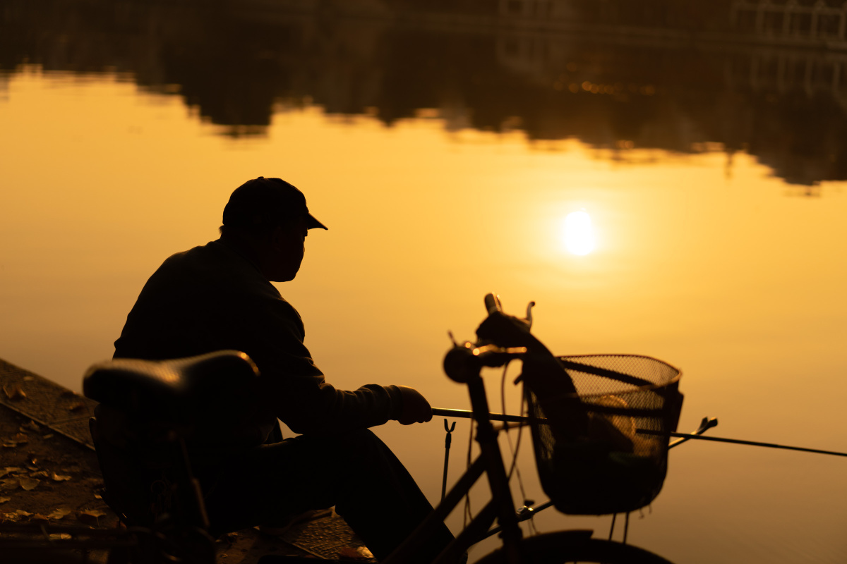 始丰湖边上的钓鱼人.