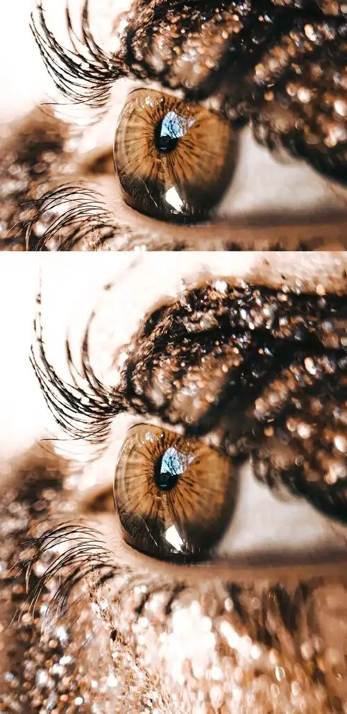 美丽的小女孩褐色眼睛特写镜头宏观照片