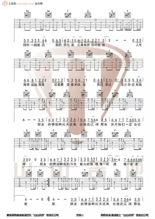 我的好兄弟吉他谱c调原版弹唱六线谱高进小沈阳