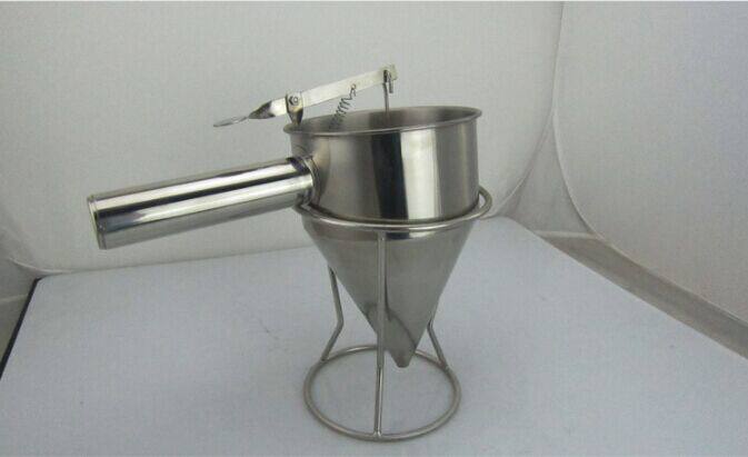 不锈钢章鱼小丸子漏斗配套工具分装面糊漏斗锥形商用连架子分液器