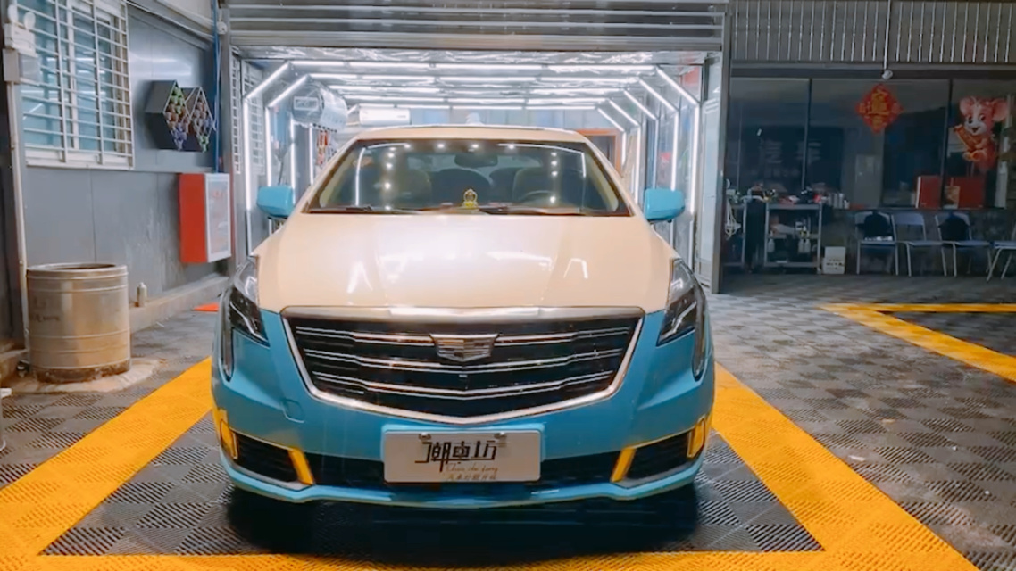 大片来袭~ 凯迪拉克xts双拼高亮白77高亮浅天空蓝完工效果~[色]