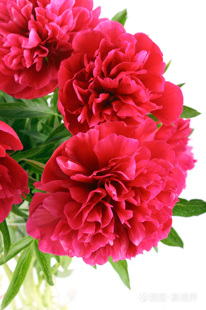 牡丹红色花朵,绿叶