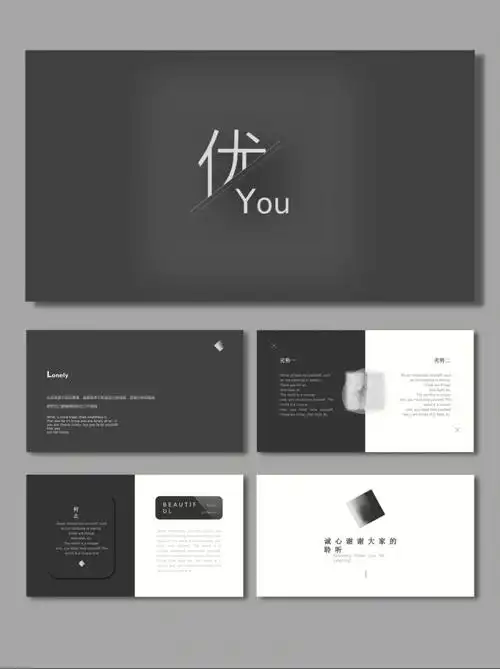 ppt模板简约大气黑白作品集简历ppt模板