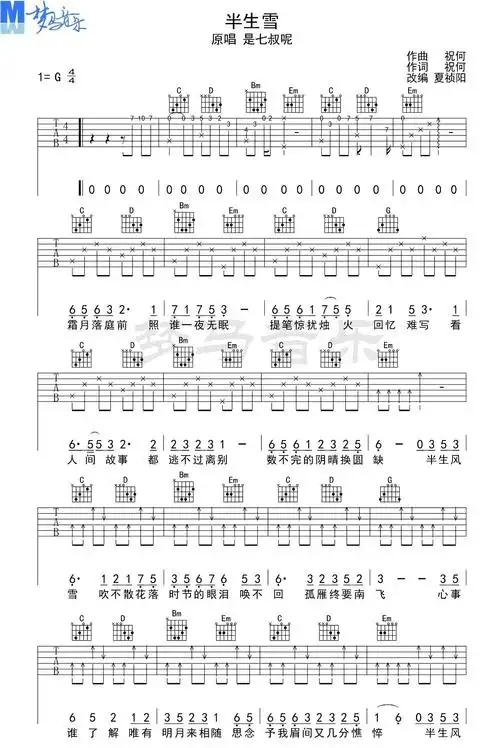 半生雪是七叔呢原版吉他谱