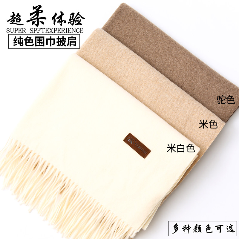 米白色围巾女春秋冬季纯白百搭针织薄款米色驼色羊毛厚披肩仿羊绒