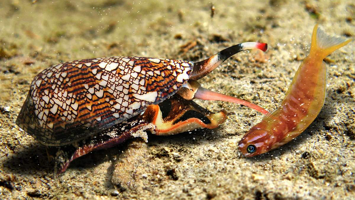 p>鸡心螺(cone snail)又叫"芋螺",主要生长于热带海域,一般多生活在