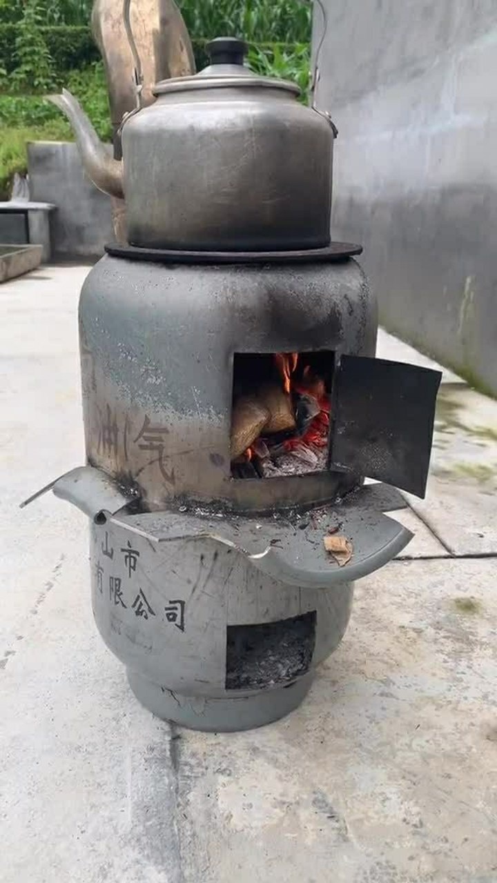 小伙利用煤气罐改装柴火炉,做饭烧水很快,外观还非常有个性-生活视频