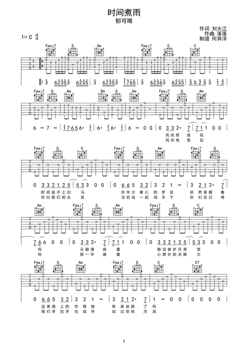 郁可唯时间煮雨吉他谱c调吉他指弹独奏谱