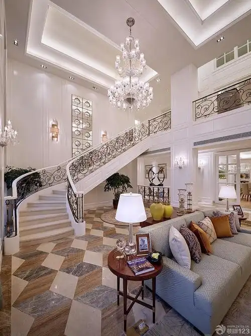 挑空客厅带旋转楼梯别墅装修视频(挑空客厅旋转楼梯小户型)