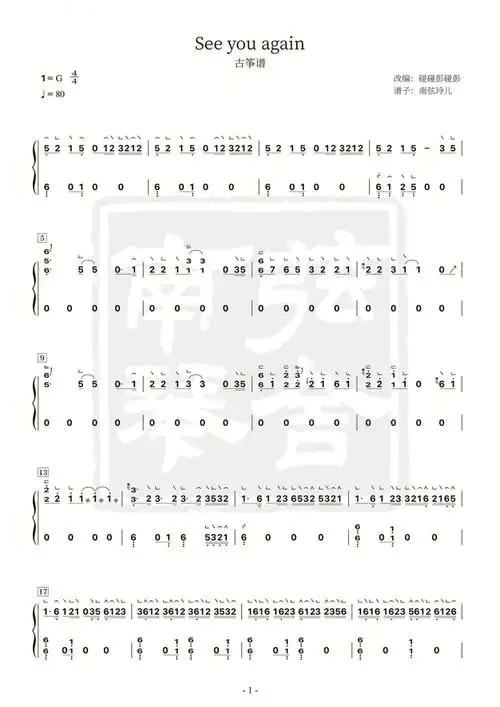 古筝谱seeyouagain更新后整洁多了