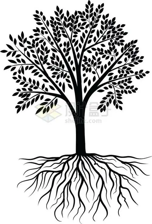 手绘插画风大树树根素材