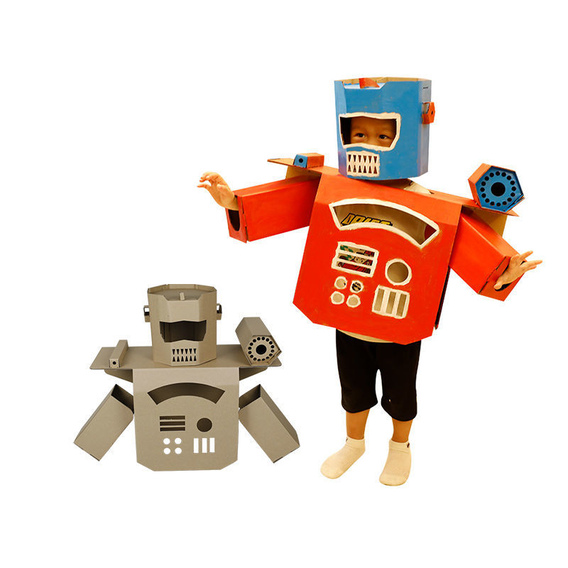 儿童手工制作纸箱机器人衣服 创意diy组装涂色纸壳玩具舞台道具 儿童