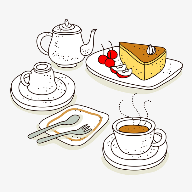 简笔画|茶与蛋糕.今天来画久违的下午茶 中式的茶与甜点,栀子 - 抖音