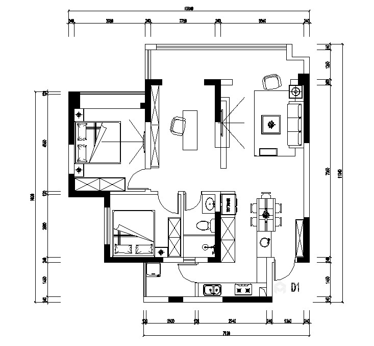 手绘平面布置图马克笔室内两室一厅作业