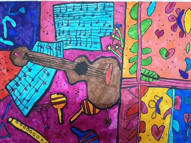 三年级美术课《感受音乐》 写美篇小姑娘跟我说对自己的画不太满意哦!
