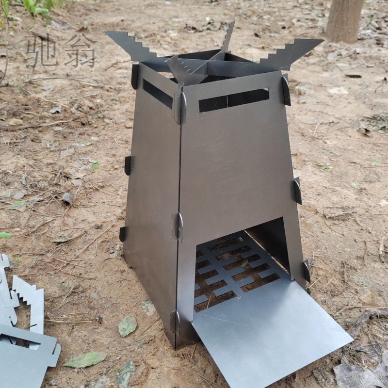 zhr户外便携式柴火炉火箭炉卡片式可折叠旅行露营骑行钓鱼野外炉
