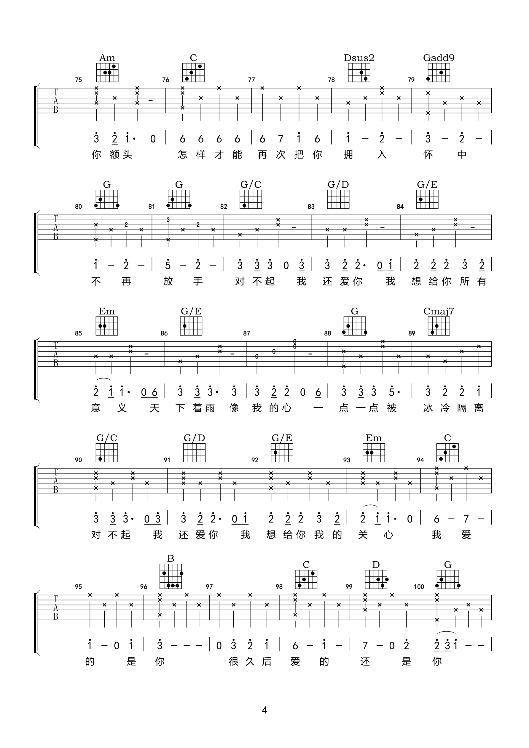 《对不起我还爱你吉他谱 回音哥 c调高清谱》吉他谱