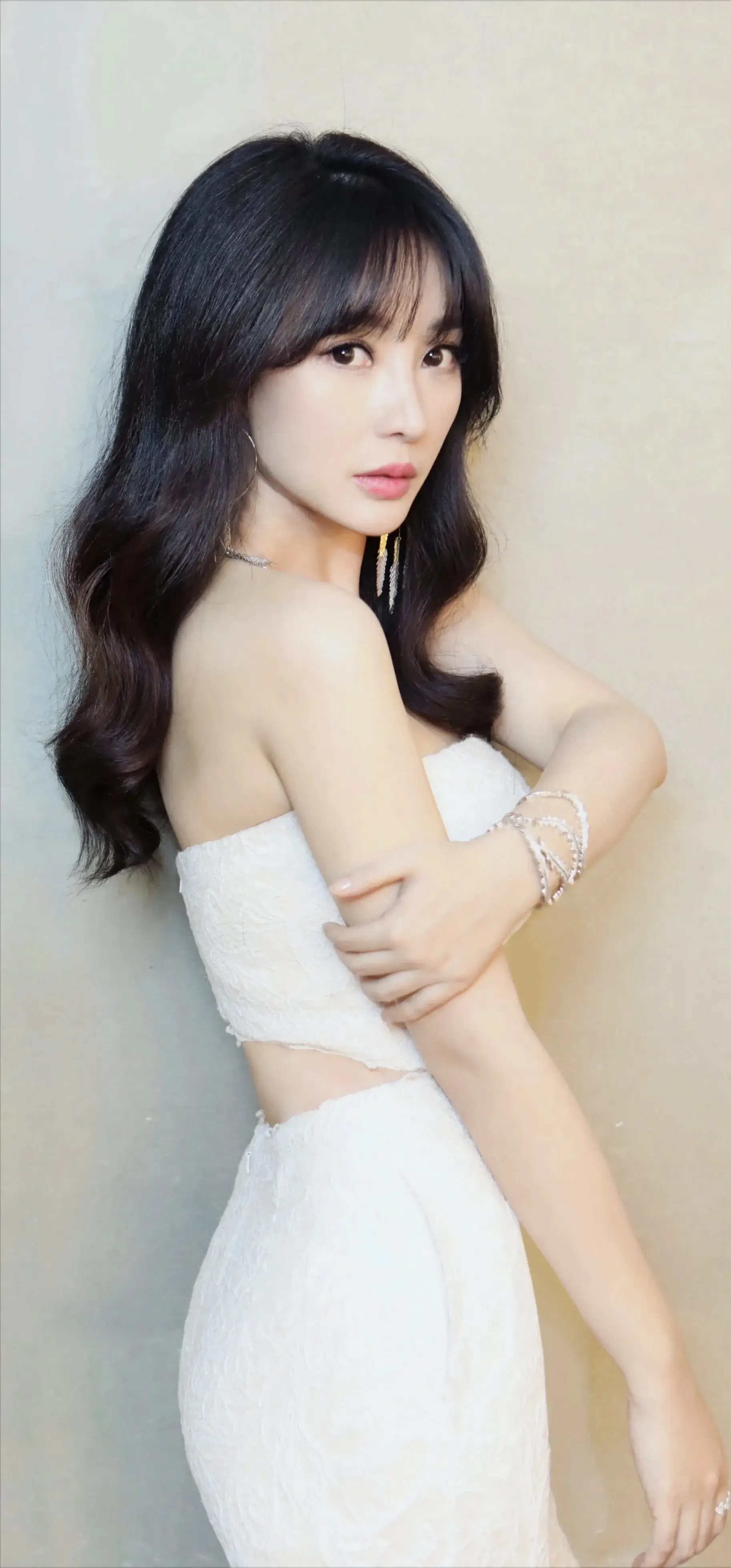 柳岩微博发布一组最新写真,图中柳岩一袭白色露肩蕾丝裙
