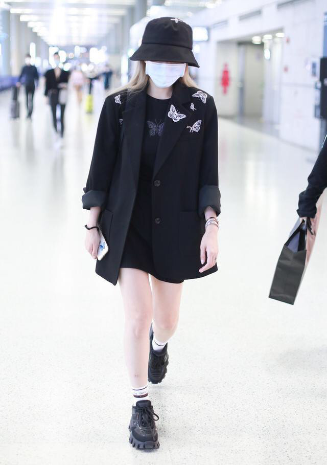 周扬青在机场的步态从容自信展现出时尚品味和个性魅力
