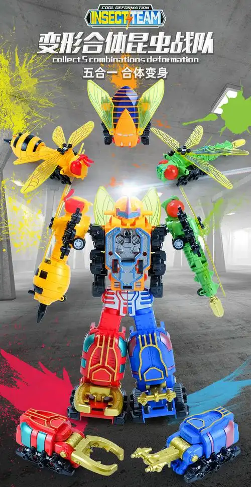 2022新款变形联盟五合体 玩具金刚组合机器人五合体汽车人警车大模型6