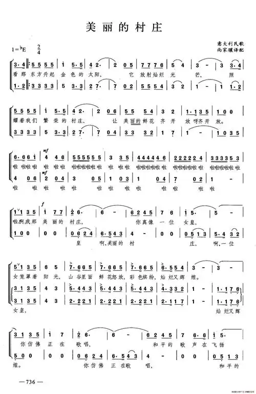 美丽的村庄(意大利民歌)[合唱曲谱] 简谱