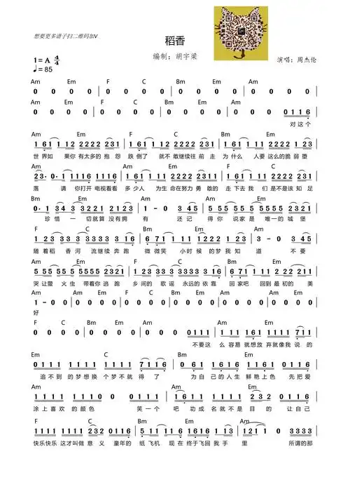 稻香吉他谱#周杰伦 #乐谱 - 抖音
