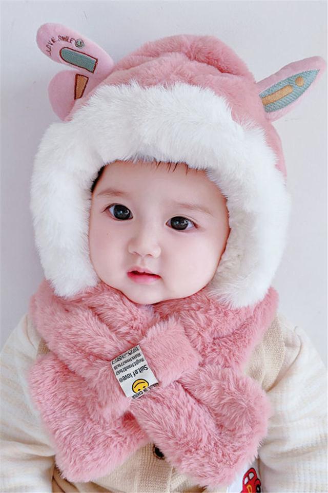 婴儿_婴儿帽子围脖两件套装围巾冬季女宝宝公主冬天可爱超萌0一1-2岁