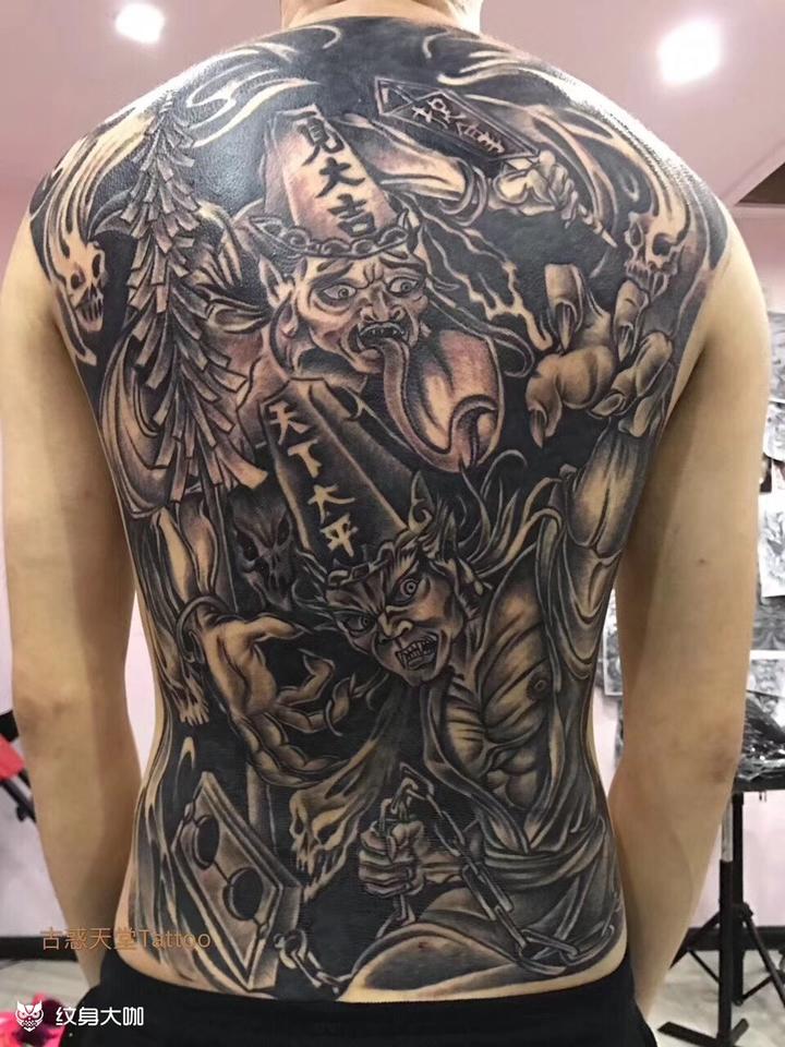 传统满背黑白无常纹身_纹身_刺青_我的纹身分享_美妆_彩妆