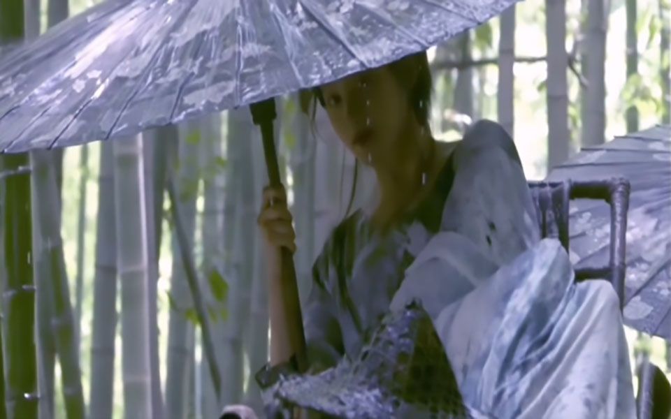 之前在张艺谋执导的电影《影》中,由关晓彤饰演的青萍,一段在雨中撑伞