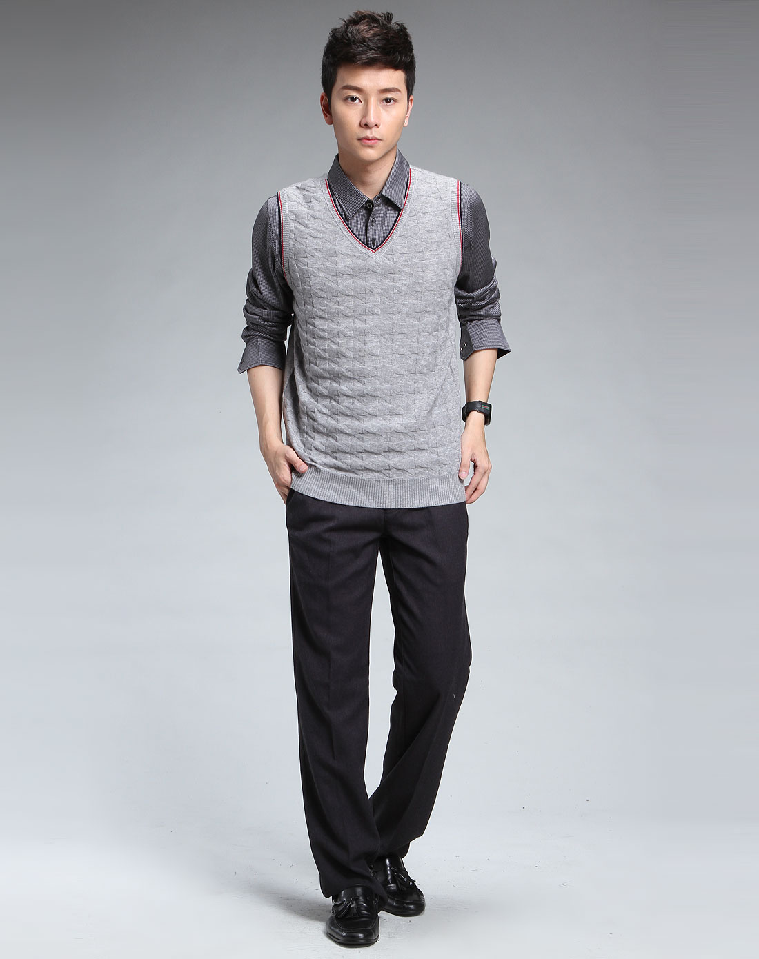 赫斐托斯(heergoos hg) 男士修身休闲v领棉灰色长袖t恤ht113203 灰色