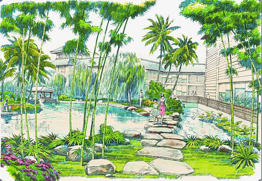 景观手绘山石叠水场景效果图马克笔上色过程分享