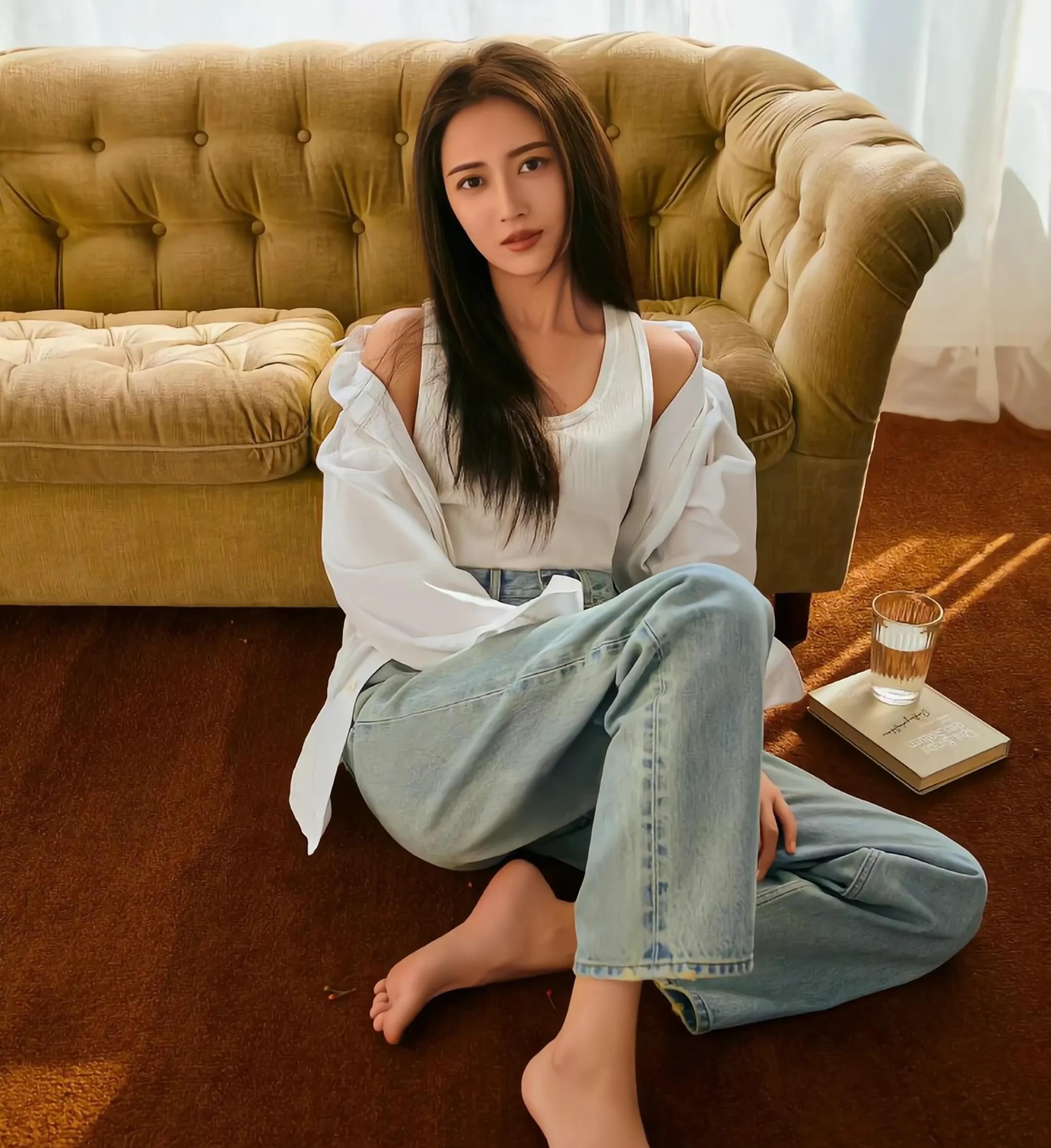 陈钰琪仅有80斤?白色低v领配亮片连体裤,笑容简直不要甜美
