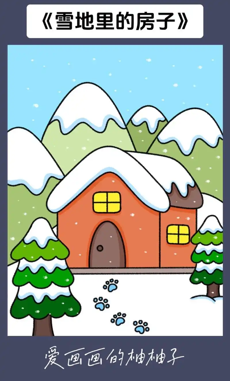 冬天主题画#下雪风景画#儿童简笔画#幼儿园简笔画#小房子简笔画
