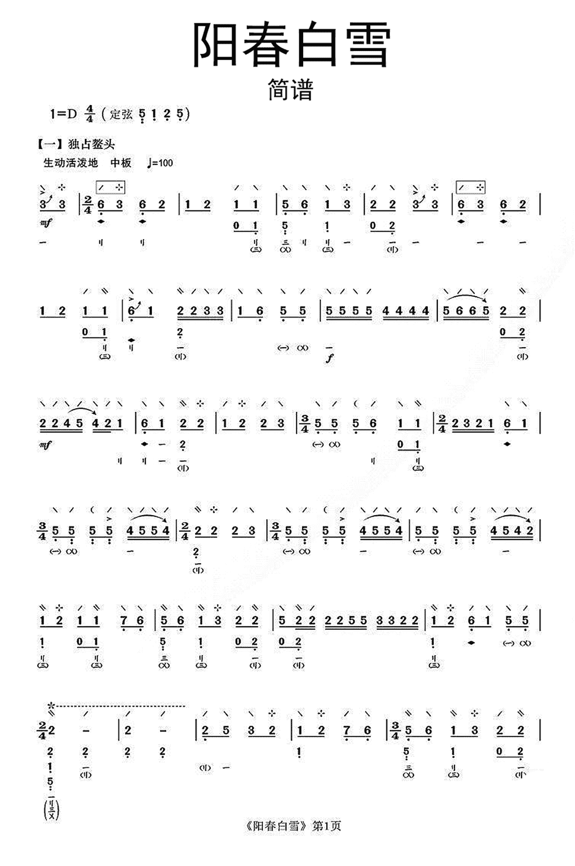 白雪简谱