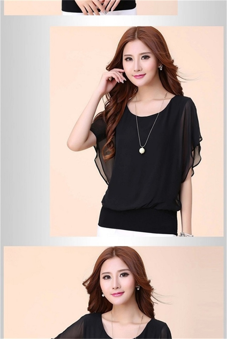 春夏新款大码女装胖mm夏装蝙蝠衫短袖女t恤宽松显瘦雪纺衫上衣女 - 17