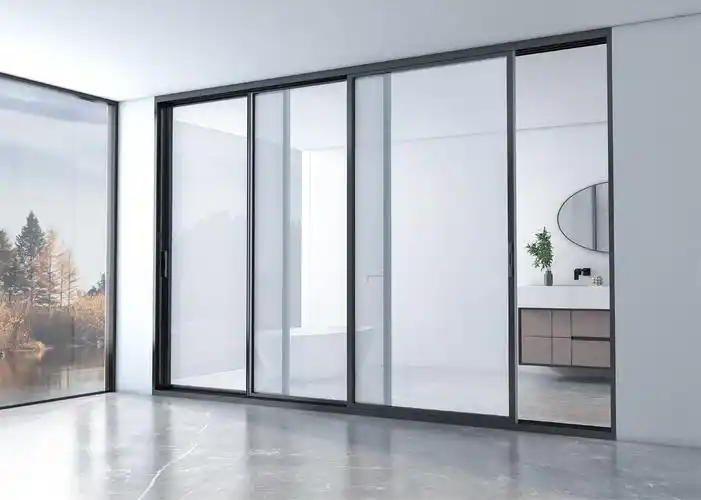 定制黑色窄边阳台三联动推拉门长虹玻璃卫生间三连动移门厨房客厅