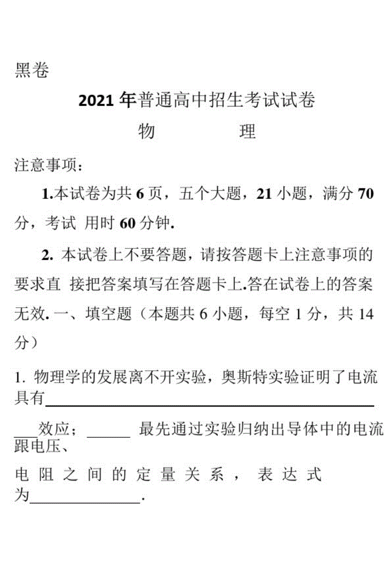 黑白卷云南省中考2021年云南省数学试题卷黑卷