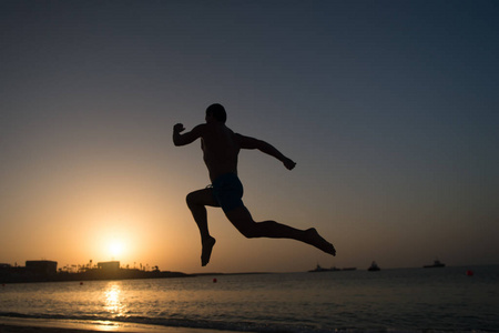 一个快乐的年轻家庭带着孩子在夕阳的余晖中奔跑着穿过田野.