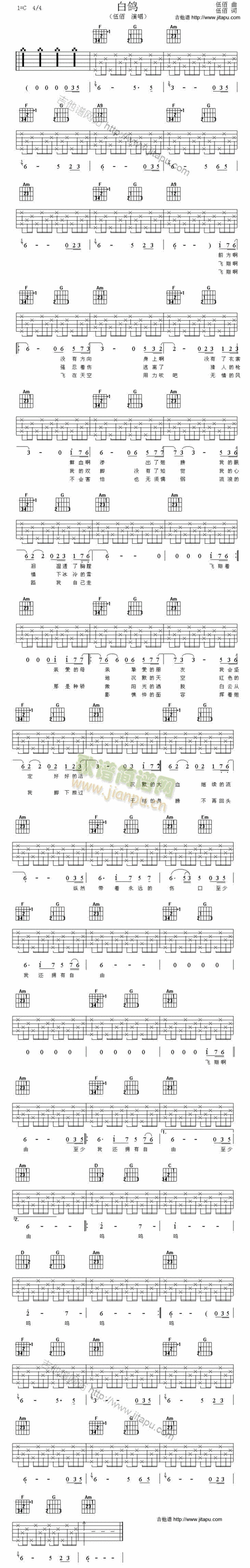 白鸽吉他谱 c调-风华艺校刘传编配版本-伍佰1