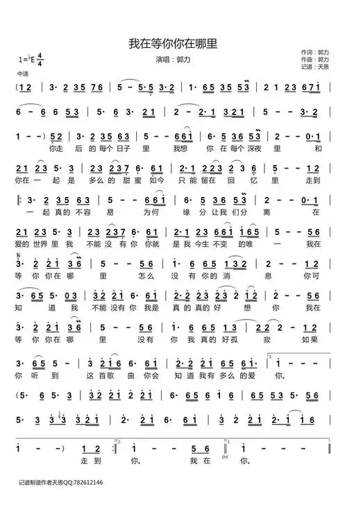 我在等你简谱