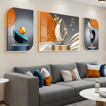 沙发背景墙装饰画现代简约大气壁画客厅挂画三联无框3d立体浮雕画