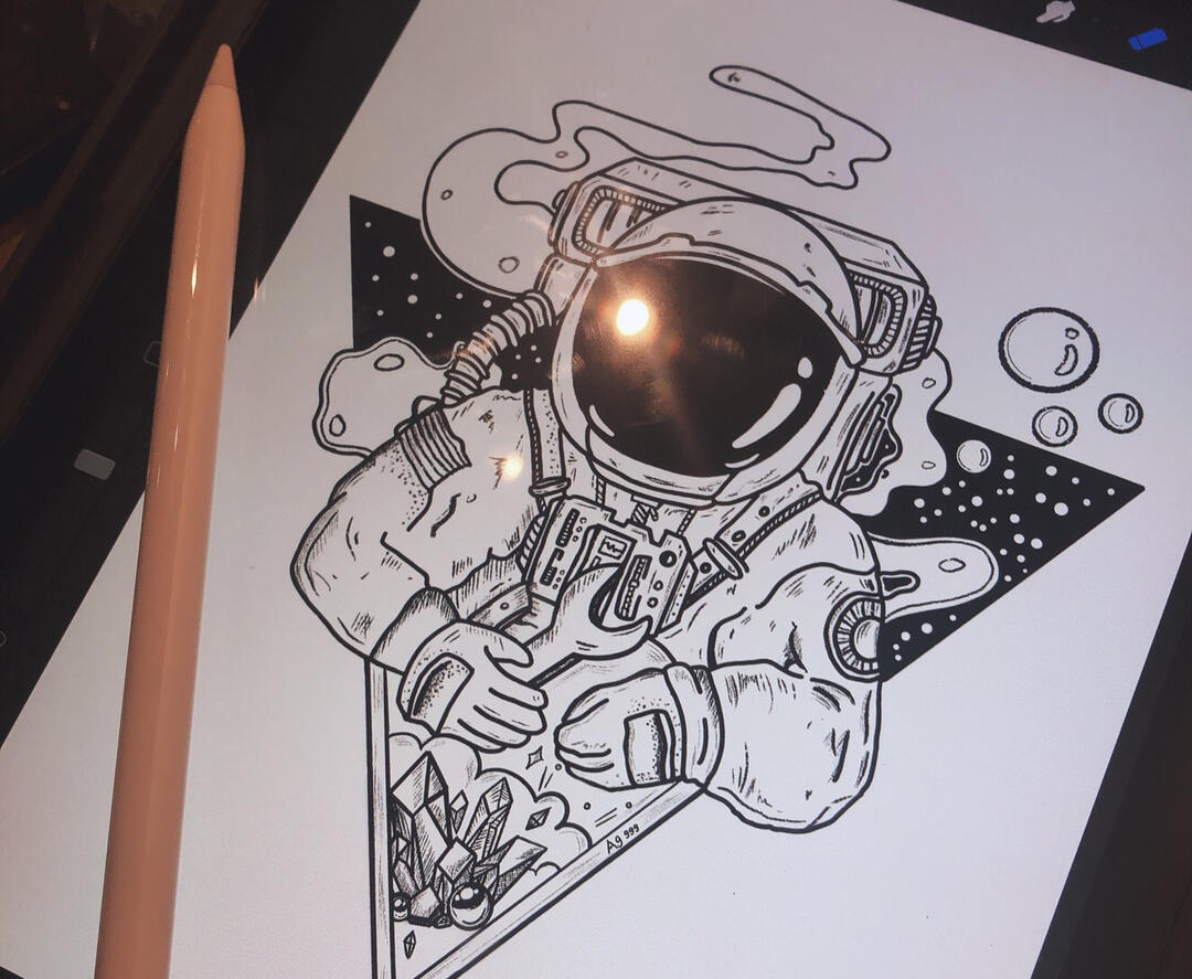 原创手绘 #插画 #绘画 #黑白 #钢笔画 #宇航员