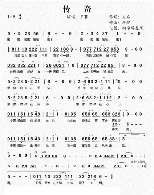 王菲李健传奇的简谱歌谱_歌谱_歌词曲谱