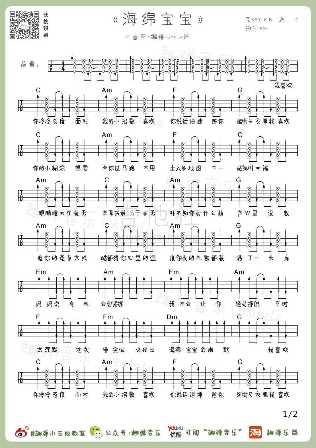 海绵宝宝吉他谱(图片谱,尤克里里,弹唱)_回音哥_海绵宝宝1.jpg