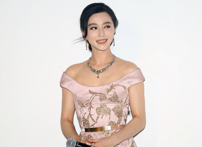 范冰冰身穿粉色一字肩礼服完美亮相,一改往日形象,满满的少女心