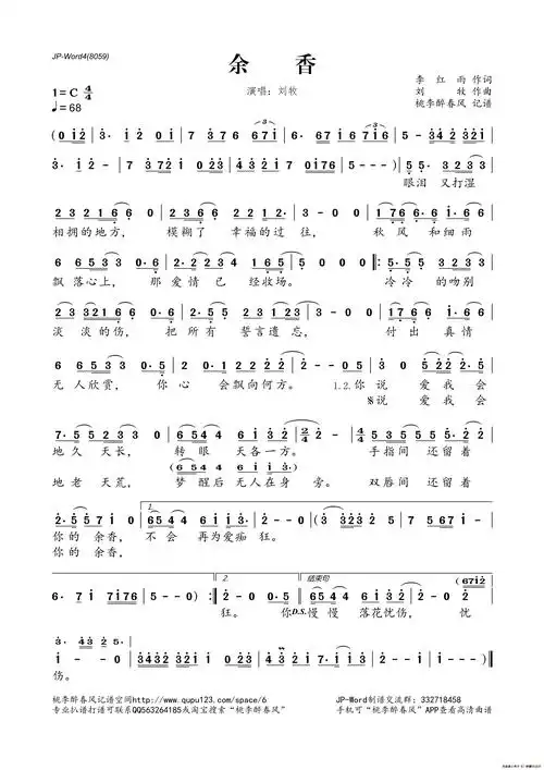 余香歌词简谱